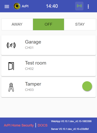 Only replacing the main board of your old security system and reuse the installed components (sensors, syren, keypad) you can make your home security system smart. The system has two major components: an adapter component for interfacing between the Raspberry PI and the security system components and the open source software to configure and use the system.